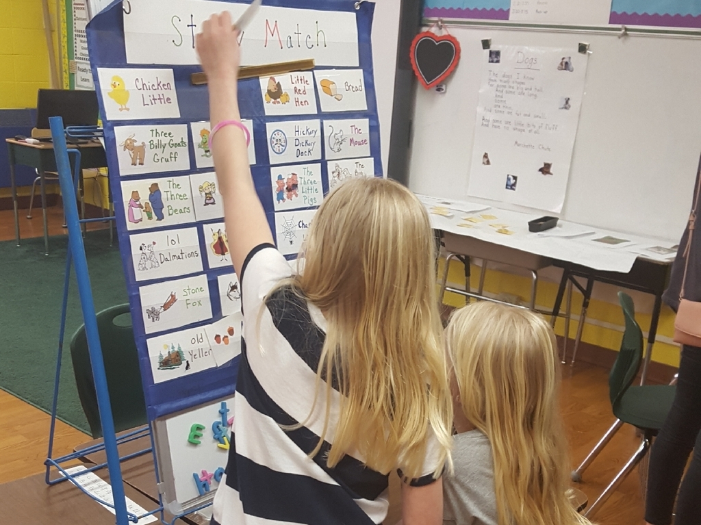 Mrs. Payton’s 1st graders have been reading fairy tales. They made stick houses after reading “The 3 Little Pigs” and made bears after reading “Goldilocks.”
